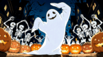無料イラスト、ジャックオランタンと白いお化け