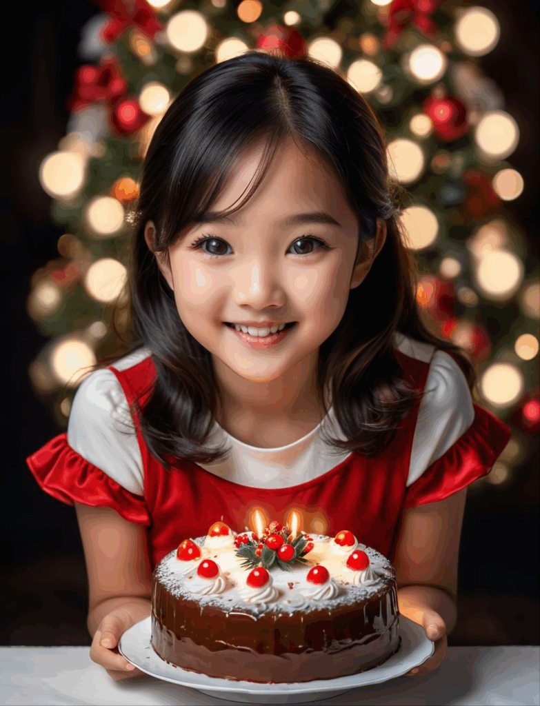 フリー素材、無料写真、クリスマスケーキと女の子