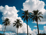 無料写真、ヤシの木と入道雲、青い空