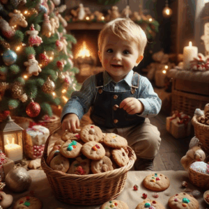 フリー素材、無料写真、クッキーに囲まれた男の子