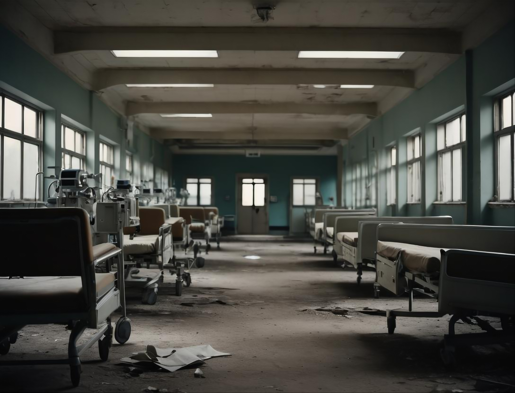 フリー素材、無料写真、廃病院、大部屋