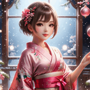 フリー素材、無料写真、クリスマスと着物の女の子