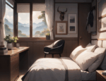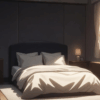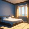 無料イラスト、夕日のさす寝室