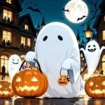 無料イラスト、お菓子を配るお化け