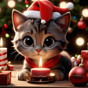 無料イラスト、クリスマスのキャンドルと子猫
