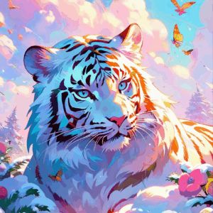 フリー素材、無料イラスト、水彩画のホワイトタイガー