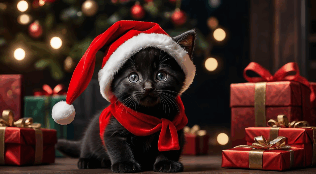無料写真、サンタクロースの黒猫