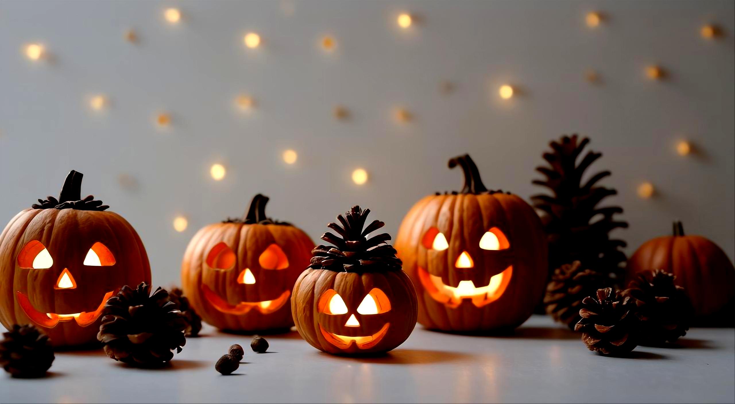 無料写真、ジャックオランタンと松ぼっくり