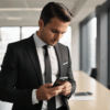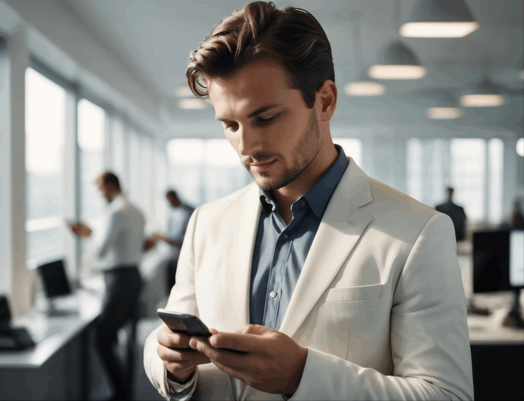 無料写真、スマホを確認する男性