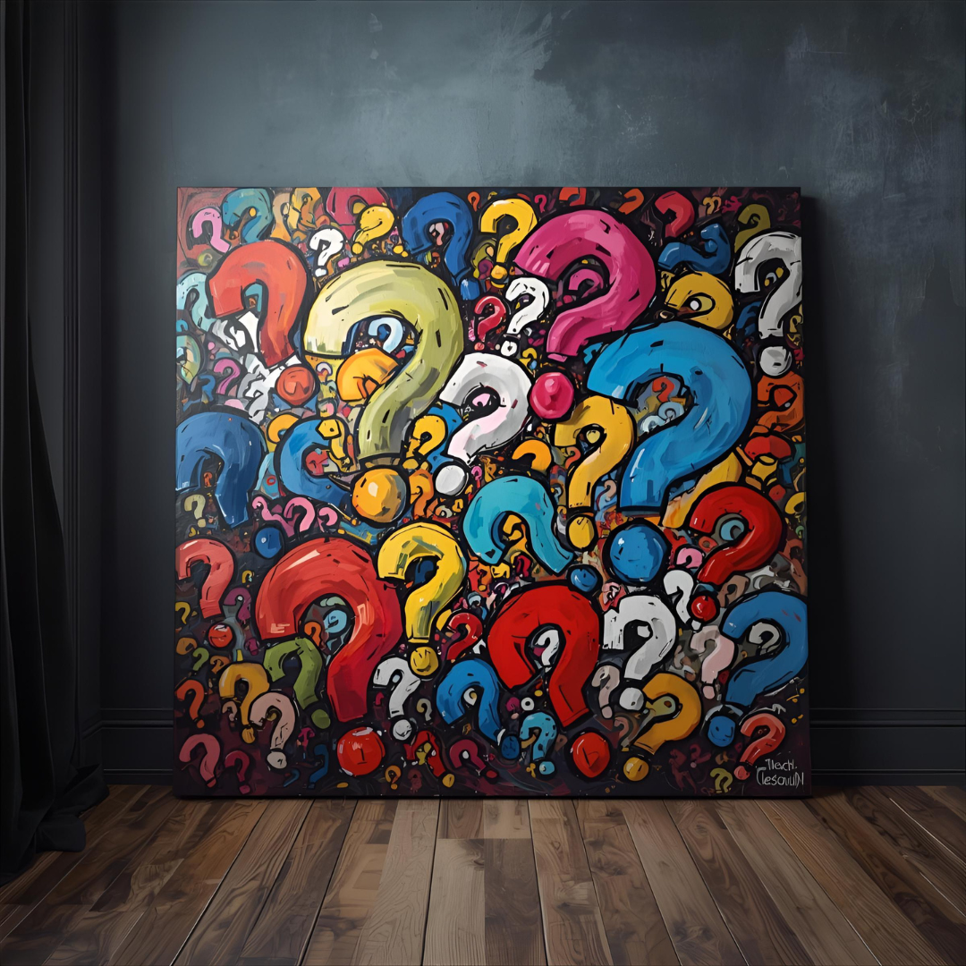 無料写真、ハテナが描かれたキャンパス