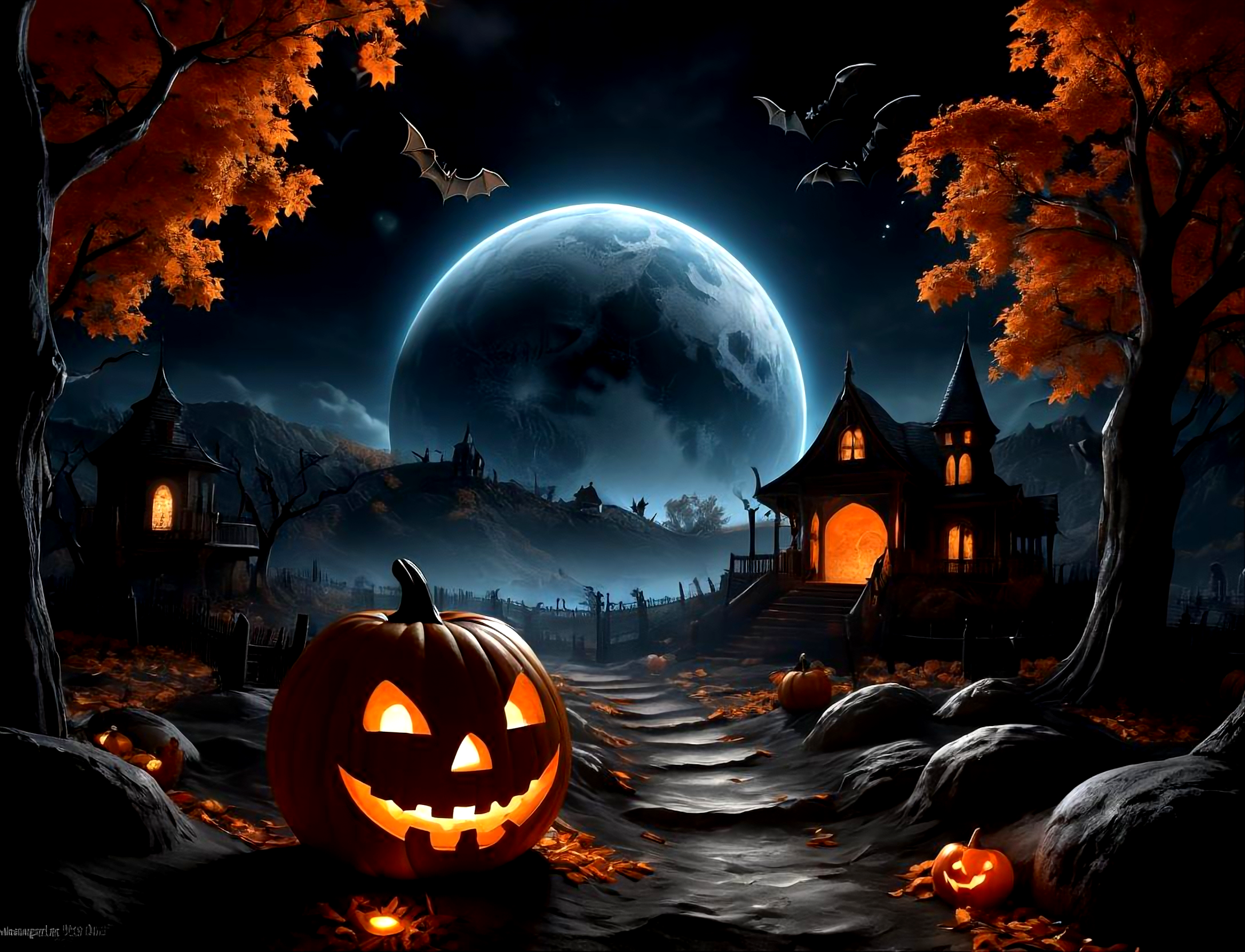 無料写真、ハロウィンの巨大な月