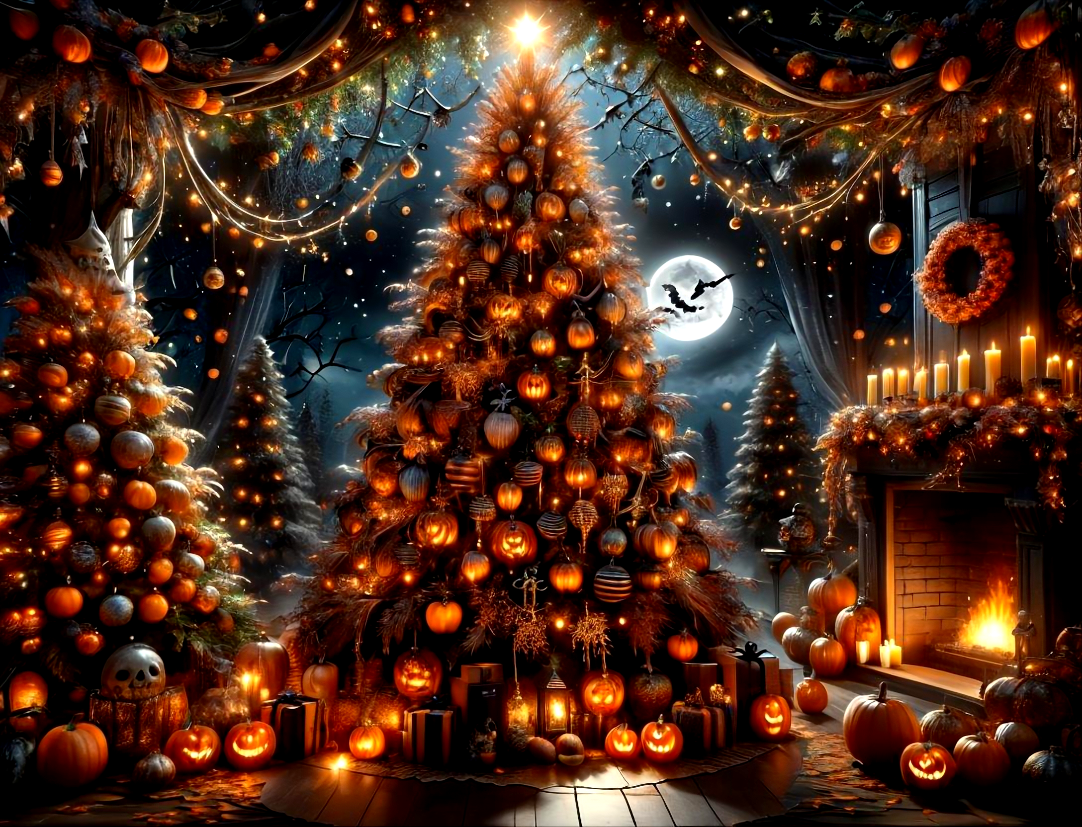 無料写真、パンプキンツリー、ハロウィンツリー