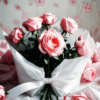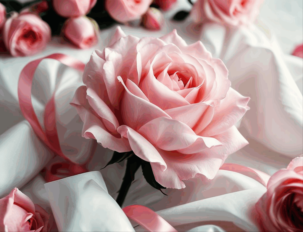 無料写真、リボンで結ばれたピンクの薔薇