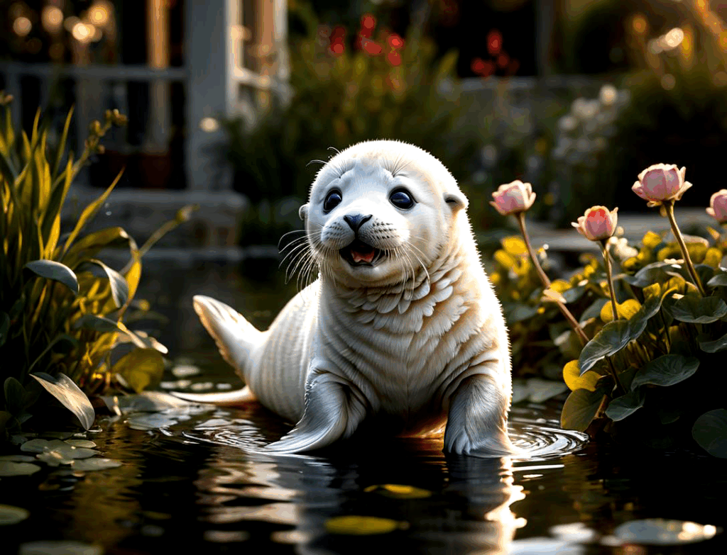 無料写真、庭に迷い込んだアザラシ