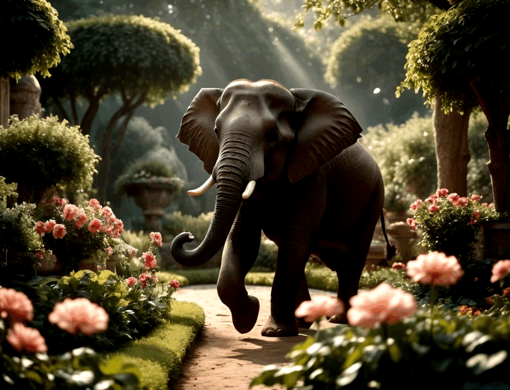 無料写真、庭に迷い込んだ象