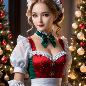フリー素材、無料写真、クリスマスイメージのメイド服を着る女性