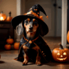 無料写真、魔女の恰好をしたミニチュアダックスフンド
