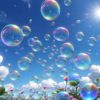 無料動画、シャボン玉が一気に空に飛んでいく